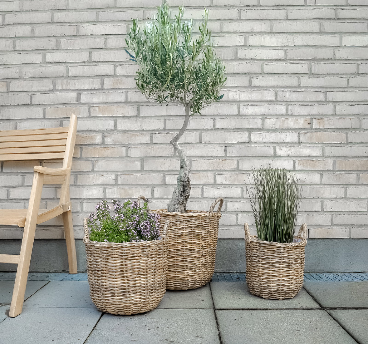 Nu kan du forvandle haven eller terrassen til en oase med disse smukke rattan plantekurve i naturlook!